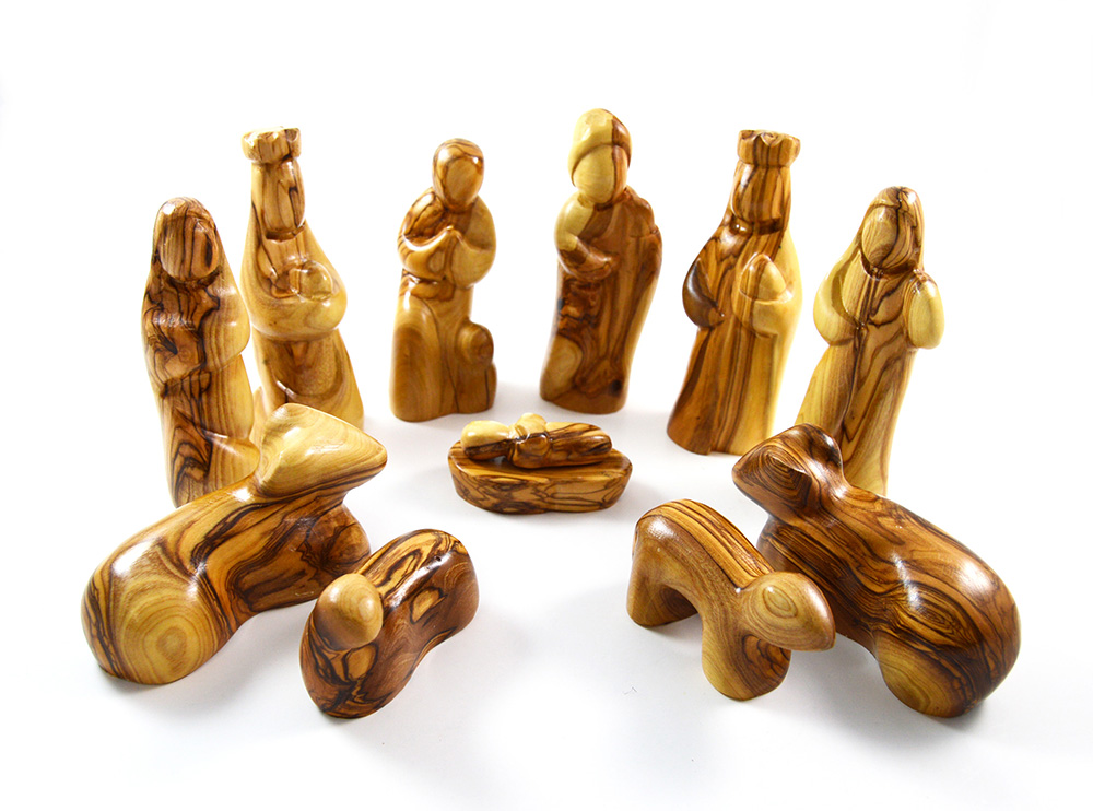 11 Pieces modern design hand carved olive wood nativity set from Bethlehem size 5.5"
