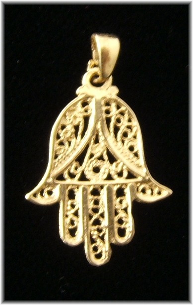 14K Gold Filligree Hamsa hand of God pendant made in Israel 7/8"