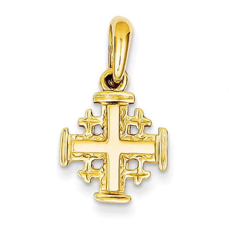 14K Gold Jerusalem Crusaders Cross pendant 13 X 15 mm