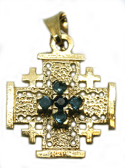 14K Gold jerusalem cross pendant hand made in the Holy Land Israel