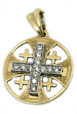 Jerusalem Cross pendant handcrafted from 14k gold set with Diamonds in Jerusalem the Holy Land, the pendant measures 0.6 inch and comes gift boxed.