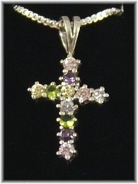 925 SILVER small cross pendant with CZ stones 18" silver chain