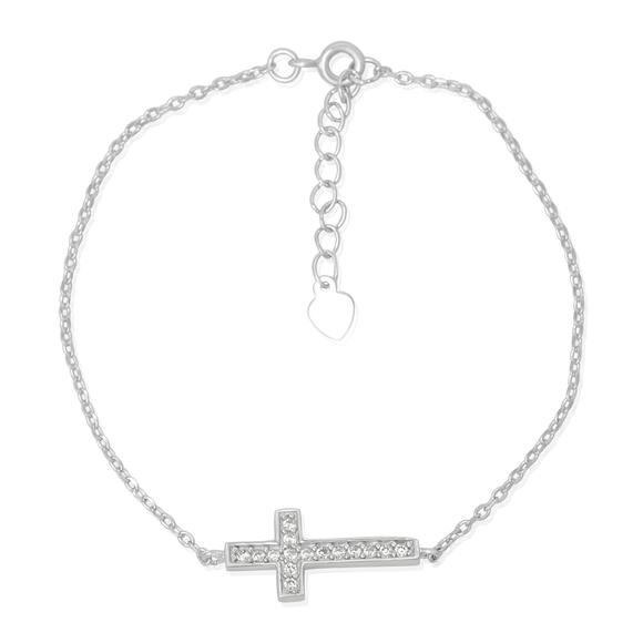 925 sterling silver bracelet Cross Cubic Zirconia 7 Inch With Extension