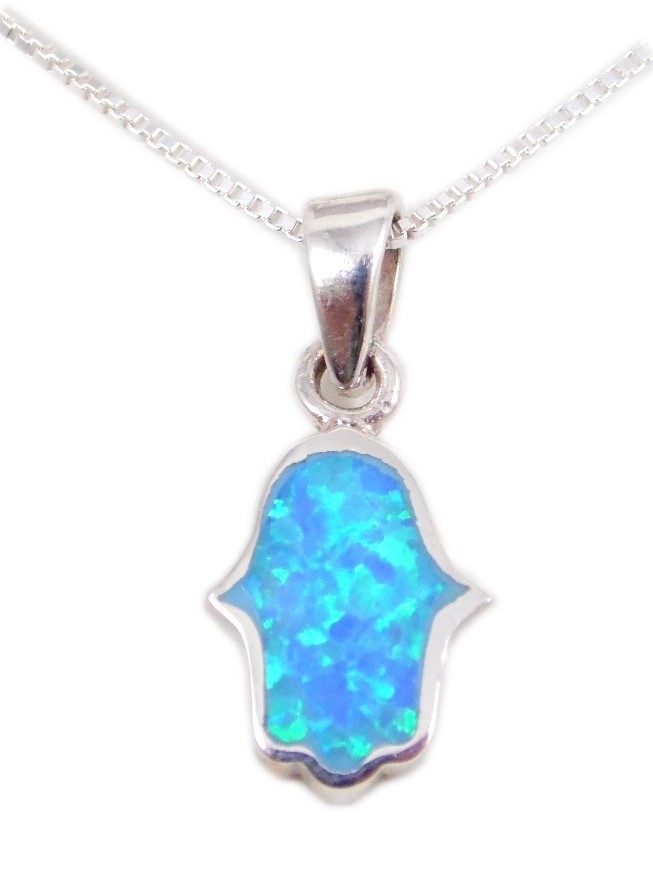 925 Sterling Silver Hamsa pendant HAND OF GOD PROTECTION with opal, the pendant measures 3/4" with the bail and 1/2" without the bail. The necklace measures 18" sterling silver 925 from Italy comes gift boxed.Ship from out store in Washington 2-4 days first class mail.