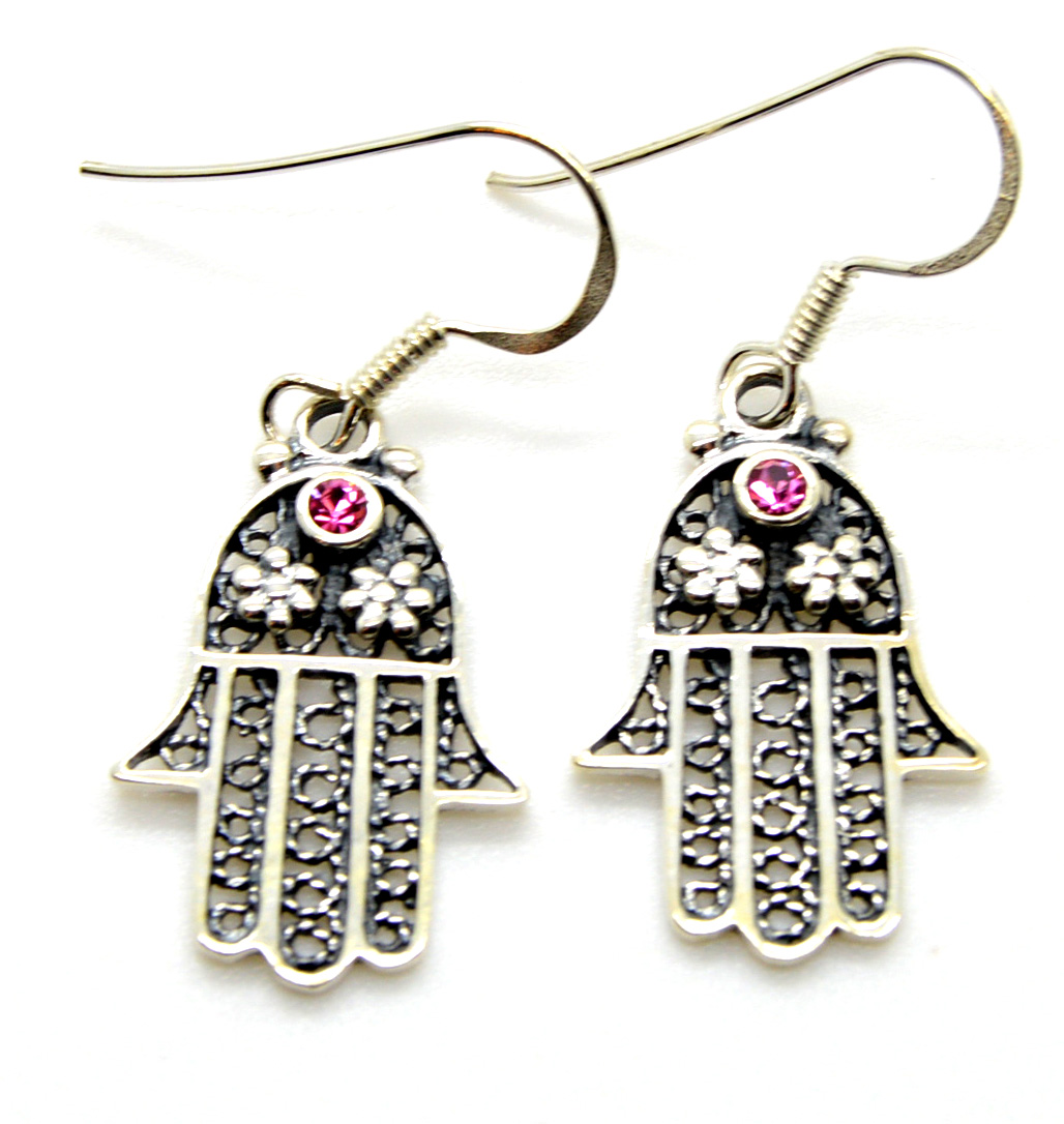 > HAMSA earrings 925 sterling silver with GARNET SIZE 3/4" GIFT BOXED