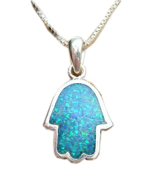 Hamsa necklace hand of God sterling silver w/ Opal 18" chain
