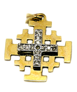 Jerusalem Cross pendant handcrafted from 14k gold set with Diamonds in Jerusalem the Holy Land, the pendant measures 0.6 inch and comes gift boxed.