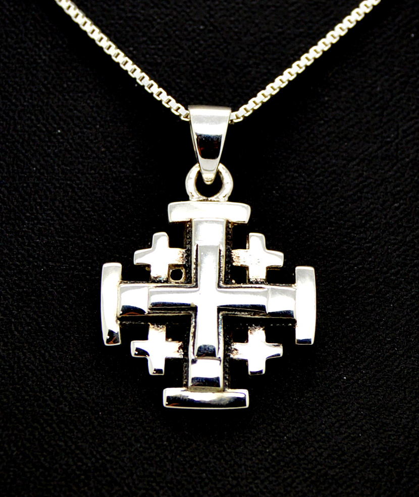 Handcrafted from 925 Sterling Silver Jerusalem Cross pendant multi level , the pendant measures 1 1/4” with the bail and comes with 20" sterling silver chain necklace gift boxed.SORRY OUT OF STOCK