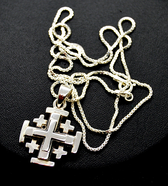 Jerusalem Cross Pendant 925 Sterling Silver multi level Israel Holy Land 20" necklace