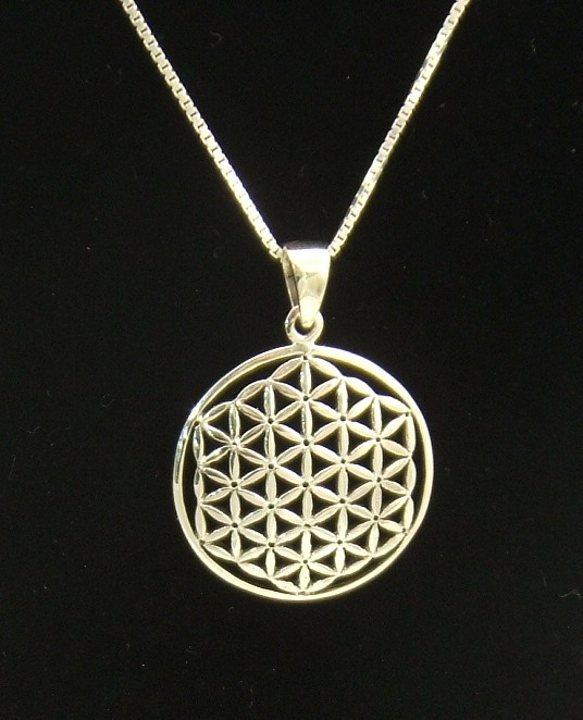 Flower of life silver pendant 18" chain necklace MADE IN ISRAEL 3/4"