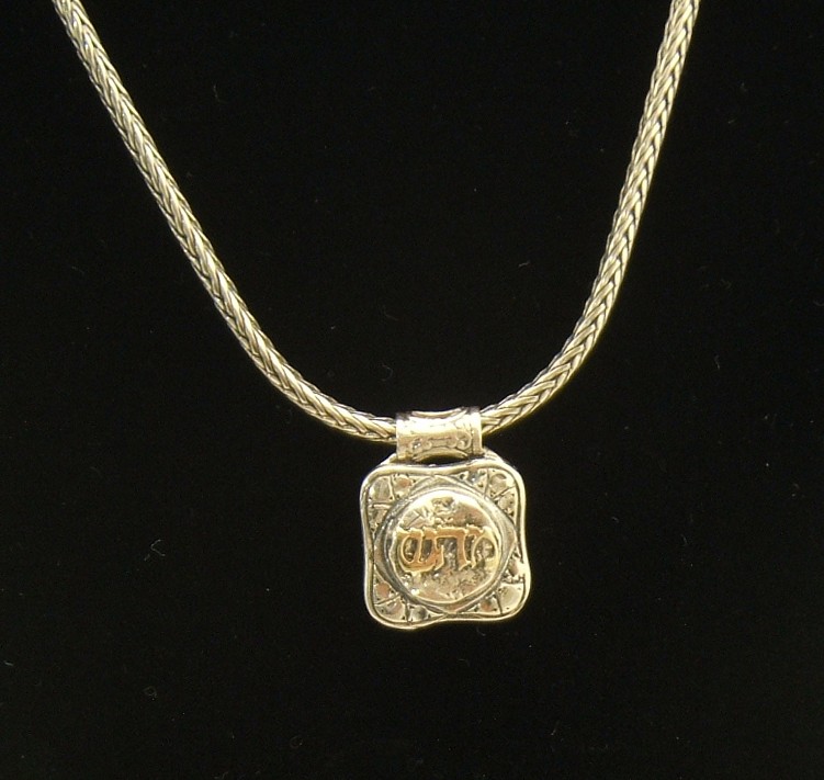 Sterling silver Kabbalah Healing necklace with 14k gold letters Mem-Hey-Shin is one of the 72 names of God for Healing. The pendant measures 22mm and the chain 17".This beautiful pendant is a powerful meditation tool as well. Meditate for yourself as well as for other people who need Healing.