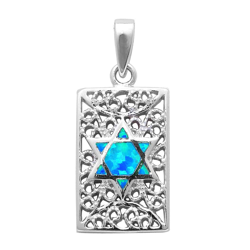 Star of David pendant sterling silver with blue Opal 1 1/8" / 28 mm