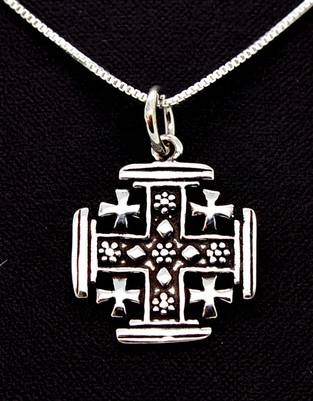 sterling Silver Handmade Jerusalem Cross Holy Land Pendant with 18" necklace925 Silver Jerusalem Cross Holy Land Pendant hand made and comes with 18" Sterling silver necklace gift boxed. The pendant measures 1" inch with the bail.