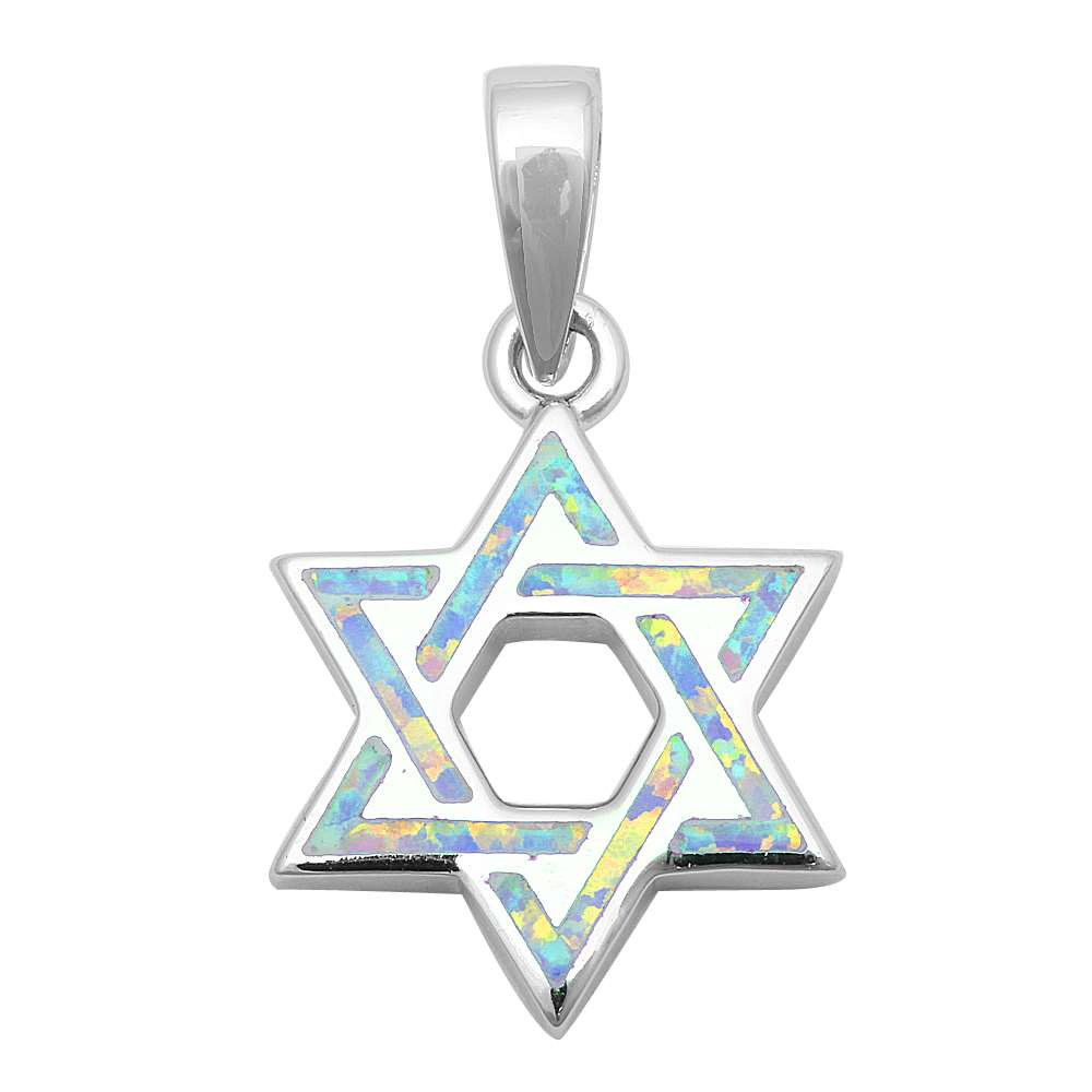 White Opal Star of David .925 Sterling Silver Pendant 1" / 24 mm